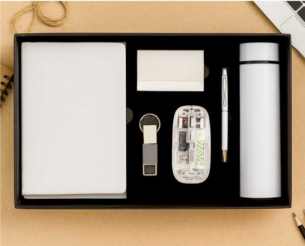 This premium combo set includes a Diary, Pen, Keychain, Cardholder, Bottle, and Mouse, designed for modern professionals and everyday convenience. Available in two classic colors—Black and White—it offers a sleek and sophisticated look to match your style. The diary and pen help you stay organized, while the cardholder and keychain keep your essentials secure. The bottle ensures you stay hydrated, and the mouse enhances productivity for work or study. Crafted with high-quality materials, this combo is perfect for office use, travel, or as a stylish and practical gift.