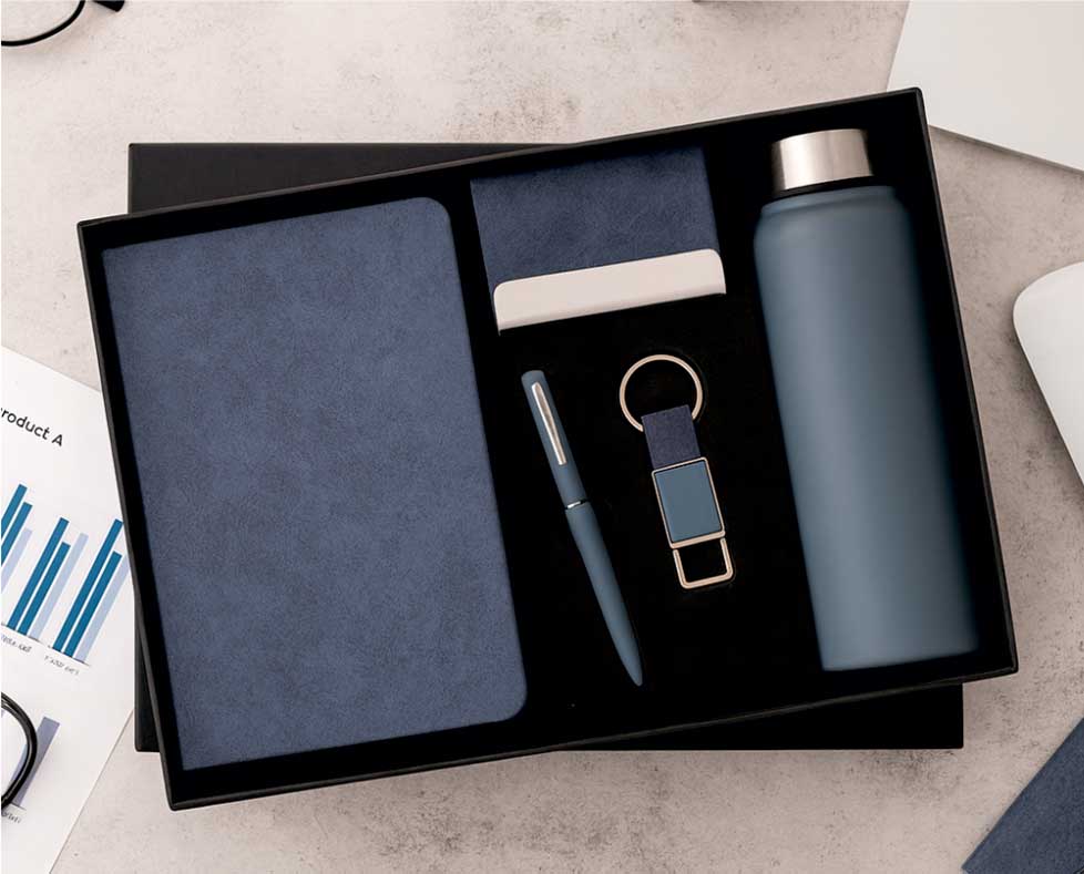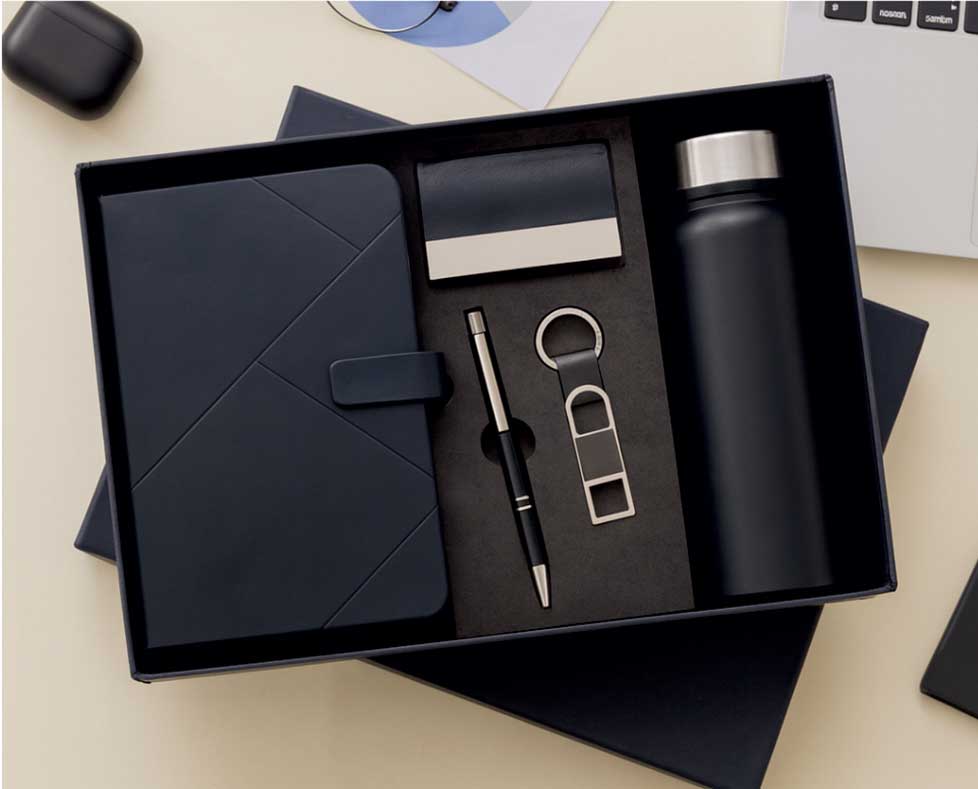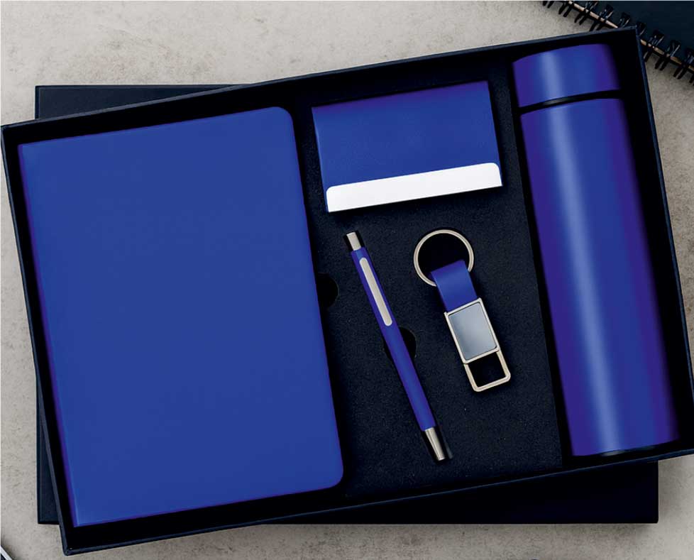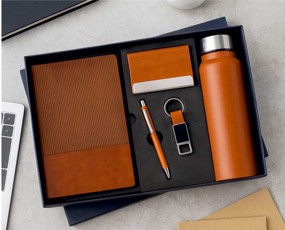 - Premium combo set with Diary, Pen, Keychain, Card Holder & Steel Bottle