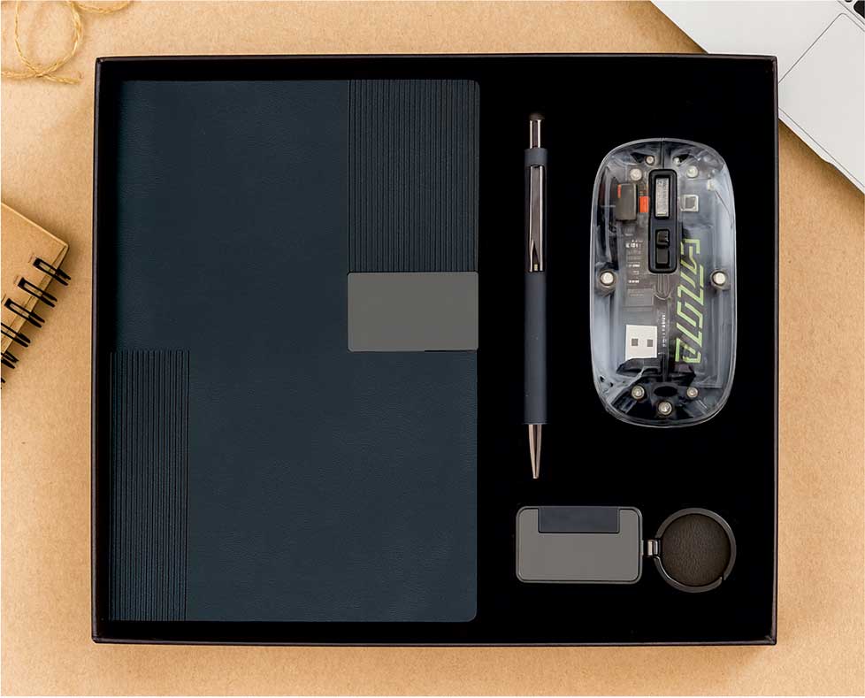 This practical combo set includes a Diary, Pen, Keychain, and Mouse, designed to support your daily productivity and organization. The diary and pen are perfect for writing notes, planning tasks, and staying organized throughout the day. The mouse ensures smooth and efficient work on your devices, while the keychain keeps your essentials secure and accessible. Crafted with quality materials, each item offers durability and a sleek professional look. Ideal for office, study, or travel, this combo also makes a useful and thoughtful gifting option.