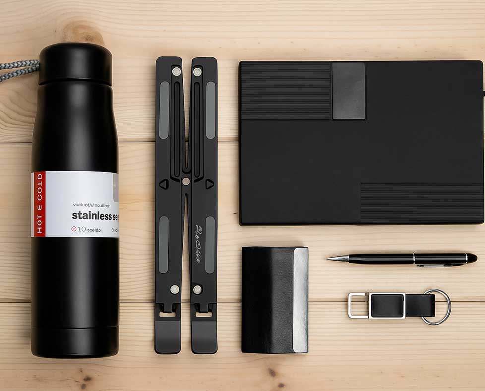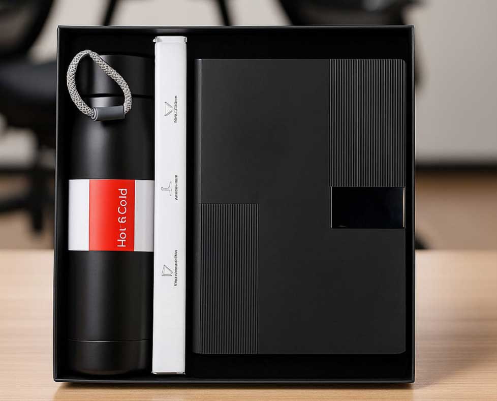 This practical combo set includes a Diary, Pen, Keychain, Cardholder, Laptop Stand, and a 500ml Hot/Cold Bottle, designed for modern productivity and convenience. The diary and pen help you stay organized, while the cardholder and keychain keep your essentials secure. The laptop stand ensures comfortable and ergonomic working, improving your daily efficiency. The insulated bottle keeps your beverages hot or cold as needed throughout the day. Crafted with quality materials, this combo is perfect for office use, remote work, travel, or as a thoughtful gifting option.