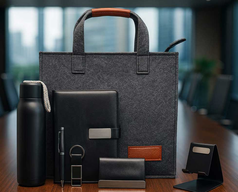 Home Corporate Gifting Joining Kit Felt Bag, Diary, Pen, Keychain, Bottle(Hot & Cold) Mobile Stand, Cardholder