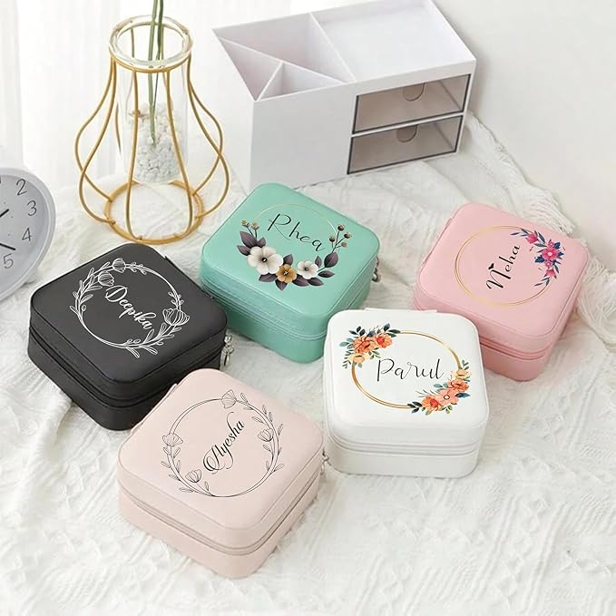 Personalised Jewellery Organiser Box, Earring Storage Case gift for Women, Sister, Girlfriend, Wife, Valentines day | Rakshabandhan, Anniversary, Mothers Day 4×4 INCH