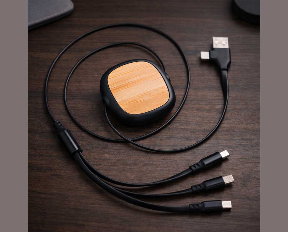 - Retractable bamboo multi-charging cable